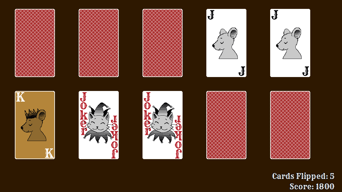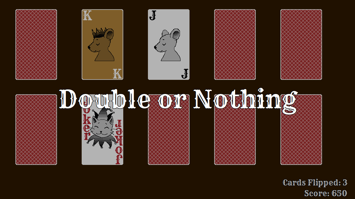 Flipping over a special golden mouse card will trigger Double or Nothing mode. For the remainder of the round, point values will be doubled. In this mode, flipping over a cat card will result in game over, so choose carefully!